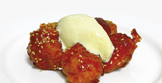(2) Fouetter trois fois avec surpression à l’aide du disque à fouetter et servir avec les bananes.